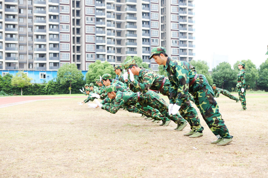 庄严的升国旗仪式后,汇报表演正式开始。国旗猎猎,1018名浙艺新生高昂斗志、蓄势待发。林国荣走下主席台,在警院领导的陪同下,对受训同学队列进行检阅。“首长好……为人民服务……”嘹亮的声音响彻云霄。在团旗的带领下,6个营30个排踏着《分列式进行曲》的乐点。红旗飘扬,壮我山河,中华儿女多奇志,不爱红装爱武装!方阵行进的口令和乐曲交织在一起,震撼人心,似钱塘江潮的一波波巨浪,涌进我辈胸怀,唤起我辈凌云壮志!一声令下,表演方阵以娴熟的队列动作快速集结在一起,俨然一支训练有素的部队,从整齐划一的队列动作到扎实过硬的倒功,慢慢倾斜,身体重重砸在地上,发出肉体与大地撞击的沉闷声音,让在场的观众不禁肃然起敬。这背后,凝聚了教官的多少心血与学员的多少汗水啊!