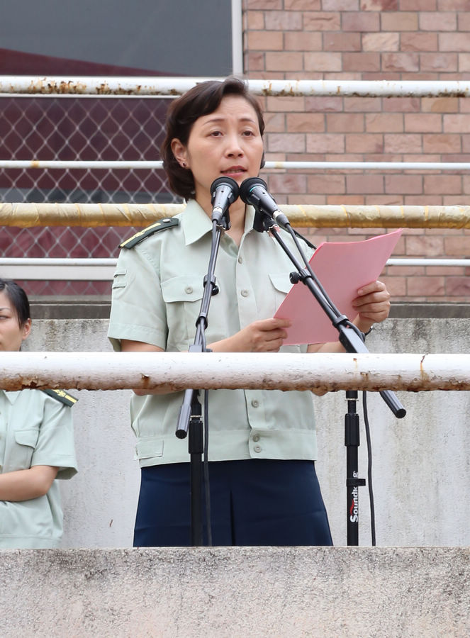 朱海闵作讲话。她表示,全体新生已逐渐蜕变,学会了军人应有的信念和集体荣誉感,他们用实际行动向老师和教官们交上了一份满意的答卷。军训的结束也是大学的开始,她殷切希望同学们在以后的学习生活中保持严明的纪律、顽强的意志、和谐互助的团队精神,在困难与挫折前,坚持到底,向目标一步步奋进。