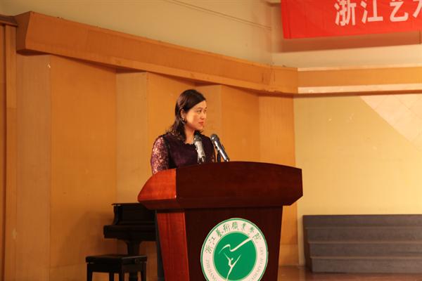 院长黄杭娟在毕业典礼上致辞。她向如期完成学业的同学们致以热烈的祝贺,向辛勤耕耘、兢兢业业的老师们表示衷心的感谢,向始终关心、默默支持的家长们致以由衷的敬意。她寄语每一位毕业生,当初懵懂的孩子如春笋般带着稚气,如今已成长为一名身怀技艺、锋芒初露的青年。求学过程中的苦、辣、酸、甜,各种滋味你们自己忘不了,老师们更难以忘怀。想起了你们为了演绎一个作品,在排练厅里“雕琢”一遍又一遍;想起了你们通过勤奋努力,在舞台上、在比赛中脱颖而出,展现出所有的精彩……这一切都已深深地驻留在母校老师的记忆里,更沉淀在“浙江艺术学校”的深深底蕴中。在同学们长大成人、走向大学的里程碑时刻,黄杭娟代表母校老师,向同学们提出了三点期望。一是保持相对乐观的情绪,人生路上必定会遇到曲折、责难和误解,只有不断反思,以乐观向上的态度回归原点,调整方向,人生的发展空间才会越来越广阔。二是具有认真做事的毅力,这是人最终成功的决定因素,只有脚踏实地,做好事情,才会收获“真刀真枪”的本领。三是常怀“空杯”心态,人外有人,天外有天,唯有空杯之心才能不断地创造奇迹。