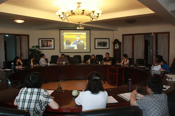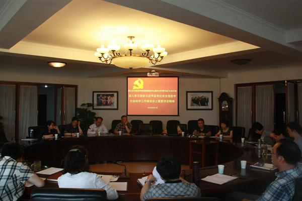 会议通过视频和要点解读学习了习近平总书记在哲学社会科学工作座谈会上重要讲话精神。院党委宣传教育处处长马向东传达了省委教育工委和省文化厅机关党委分别下发的关于深入学习领会习近平总书记在哲学社会科学工作座谈会上重要讲话精神的通知要点。与会人员一致认为,习总书记着眼工作全局,指明了当代中国哲学社会科学的责任、使命和方向,对广大哲学社会科学工作者提出殷切期望,是新形势下做好哲学社会科学工作的重要遵循。