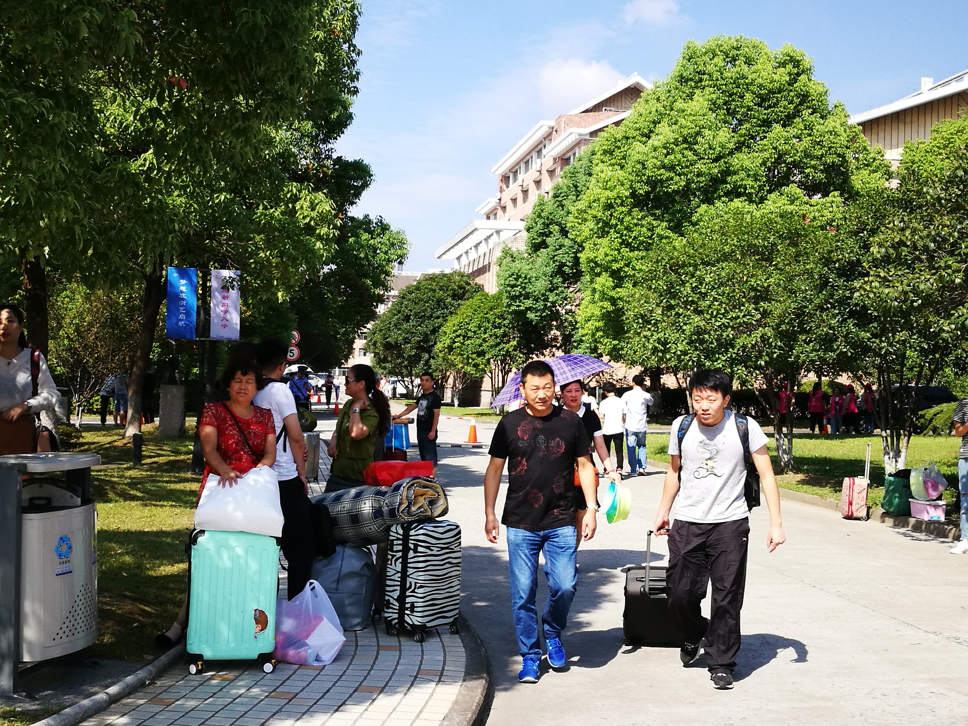 今天的杭州阳光正好,浙艺的体育馆里外萦绕着热烈的气氛,清晨就有从各地赶来的新生聚集在报到现场,在志愿者的引导下有序办理入学手续。度过了人生中最漫长的一个暑假,从嘉兴赶来的文化管理系17级策划班的许同学告诉记者,在新的学校,有遇见新同学的期待,有离开父母的不舍,其实更多的是对大学生活的期待,“这一切都汇集在今天,今天就成为人生里难忘而特殊的一天。”