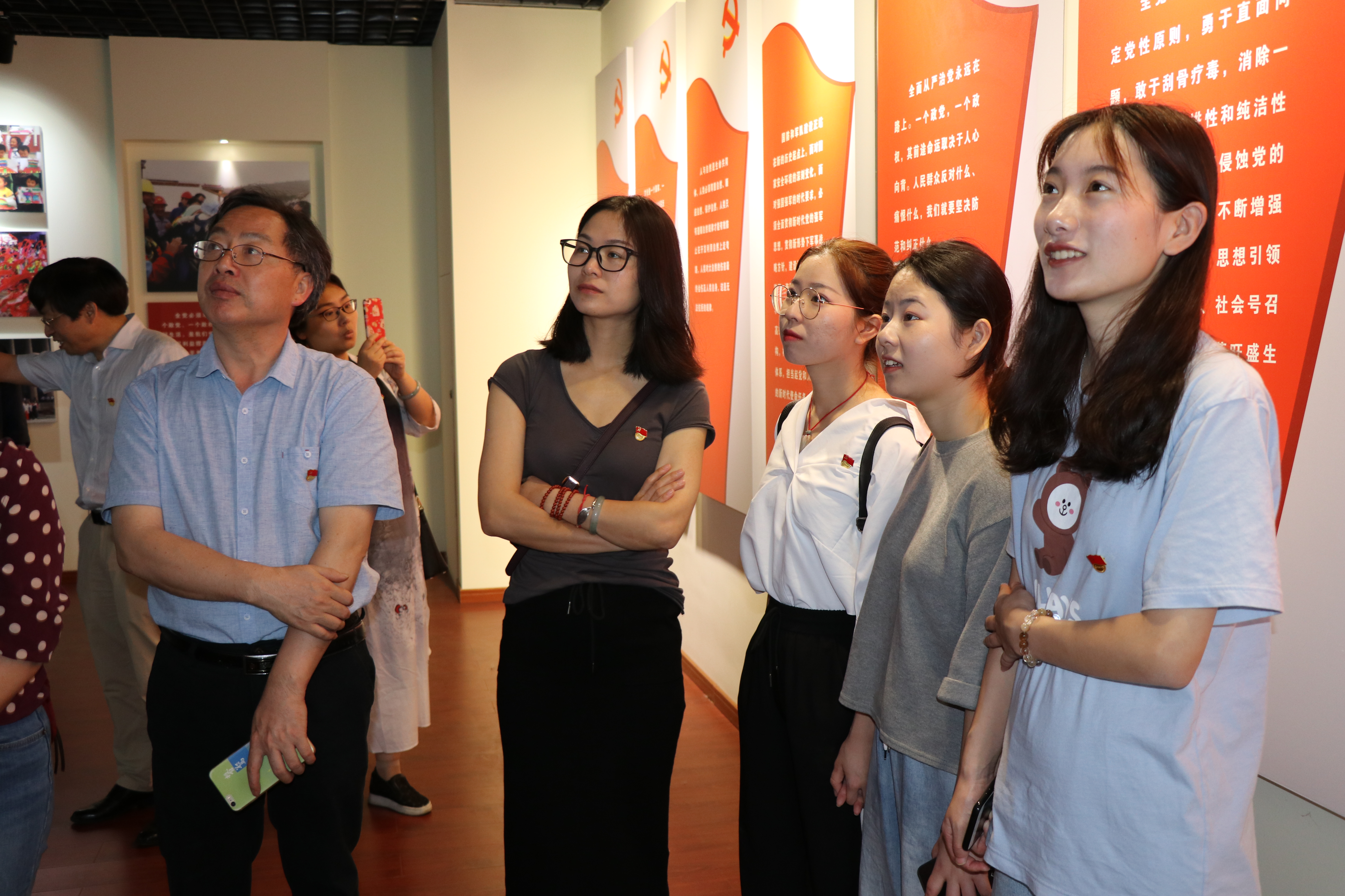 在红色之旅的尾声,党员们驻足在鲜红的党旗下,佩戴党徽、举起右手、握紧拳头,在影视技术系党总支书记、副主任彭云波的带领下,重温入党誓词,重温入党初心。在党旗下传承铁军精神,继承党的优良传统,不忘初心,牢记使命!