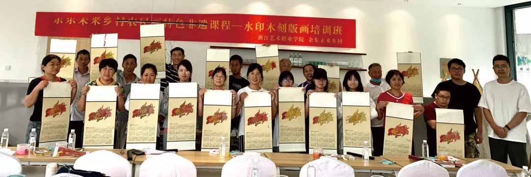 有农户表示:很感谢浙艺给他们提供免费学习的机会,以前想学,没地方学,找不到人教。这次收获满满,也学会了基础的技法。他们对于自己的作品是既满意又欣喜,期待将这些有农民画元素的手工作品,推向市场,拓展农民画艺术衍生品和尝试开设乡村旅游研学课程,找到致富新路径。大家纷纷将自己的作品通过微信、抖音等平台进行展示。