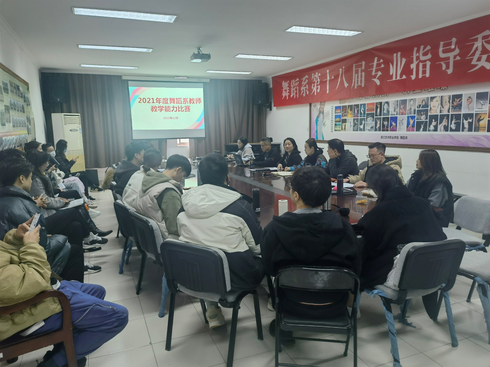 为推进 “三教”改革,构建更加科学合理的教学课堂体系,促进教师综合素质、专业水平和创新能力的全面提升,12月8日,舞蹈系举办了2021年教师教学能力比赛暨校级选拔赛。比赛由系部领导班子担任评委,专业带头人、教研室主任带头参赛,青年教师踊跃参与,比赛参与面和覆盖率创下历年教学能力比赛新高。