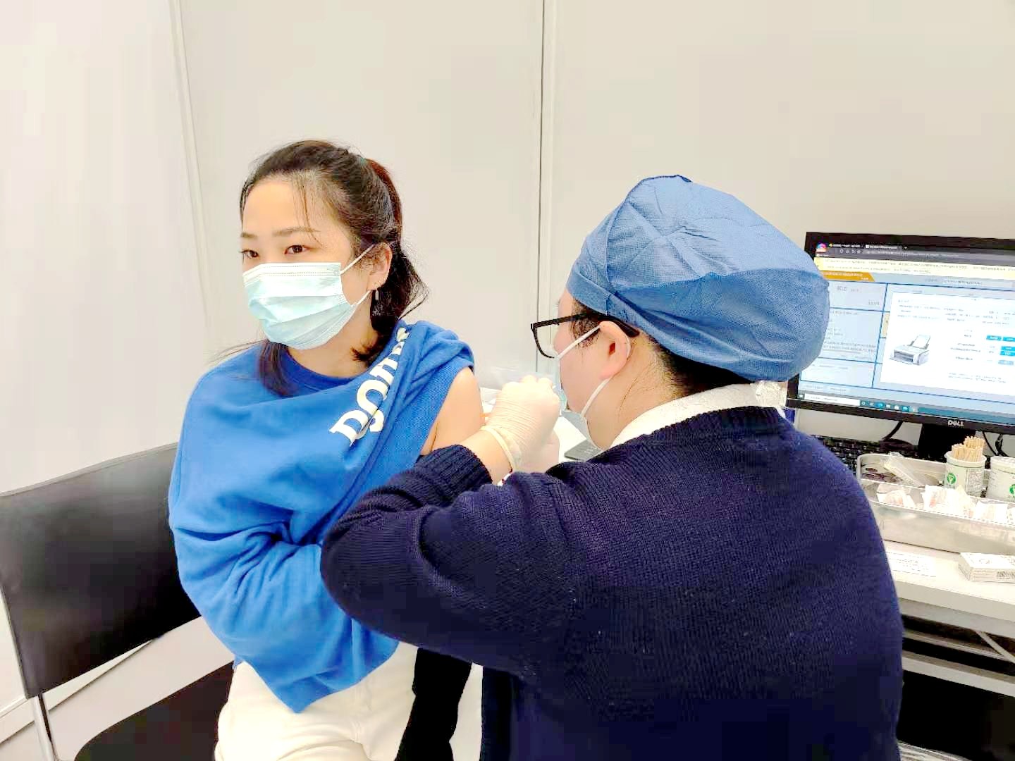 接种完疫苗后,文化管理系教师胡锦霞说:“今天开始多了一份保护,接种疫苗,让我们共同筑起防御墙,保护自己和大家的安全。”