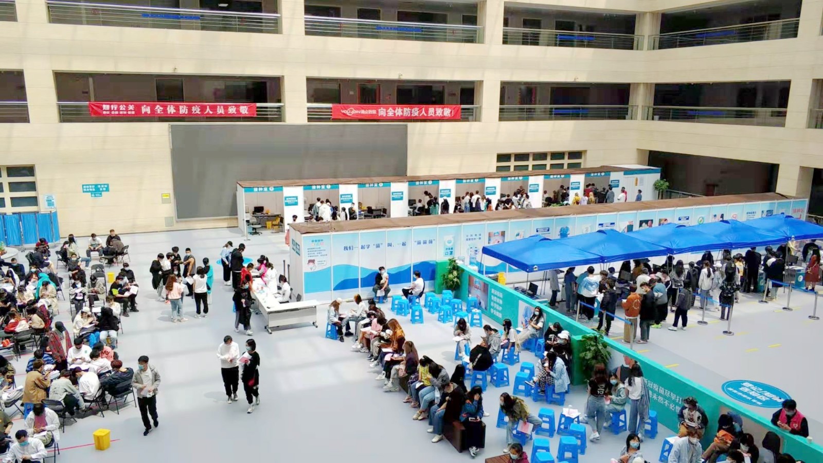 继4月9日第一批浙艺师生接种疫苗后,今天,全校各系师生、职能部门教职工分批来到滨江区浦沿街道卫生服务中心方舱临时接种点接种疫苗。