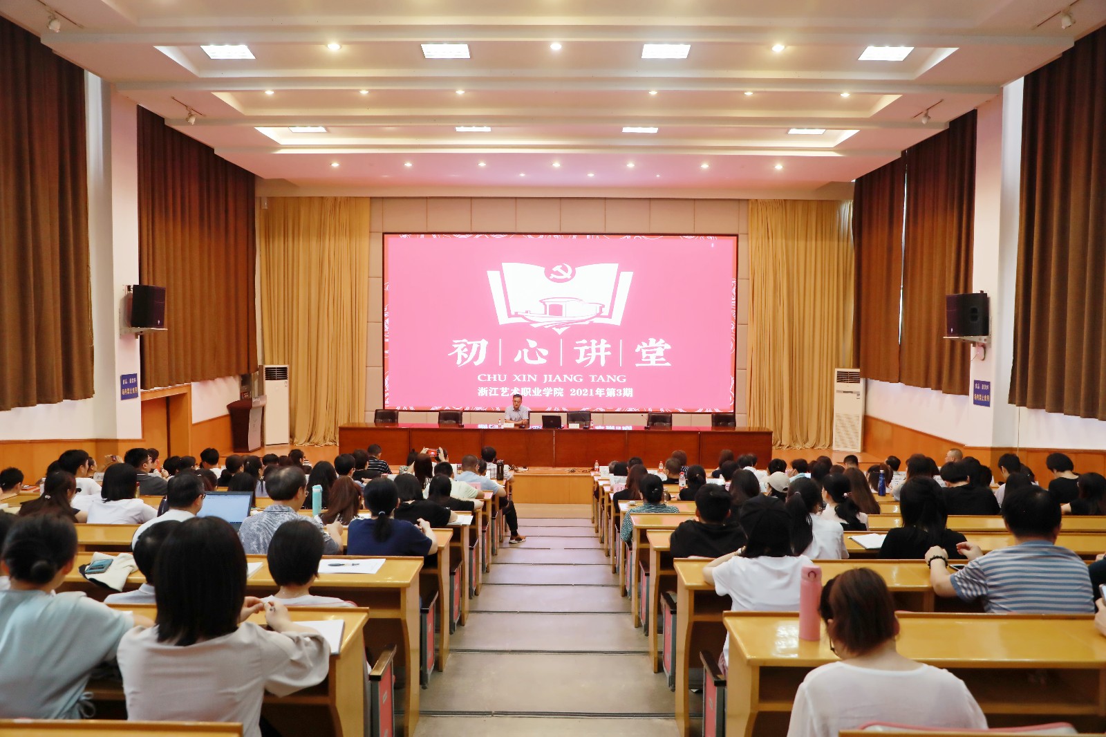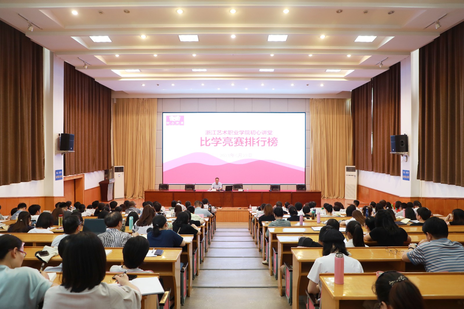 讲座前,“初心讲堂”进行了月度“比学亮晒”环节,公布了各教学单位、职能处室的专项经费执行率、固定资产报废执行率、2021年各系部招生录取率和就业率、教学科研综合指数、党员发展完成率、新闻宣传发稿数等工作数据排名,戏剧系、美术系、文化管理系负责人交流汇报了各自系部工作、存在问题和对策思路。薛亮对各部门的工作给予点评,提出各教学单位、职能处室要树立“比学赶超、争先创优”的意识,比成绩、学先进、亮问题、晒数据,用更加严实的作风、更加超前的谋划、更加精准的改革,推动学校“十四五”高质量发展,助力我省“重要窗口”建设和高质量发展建设共同富裕示范区。