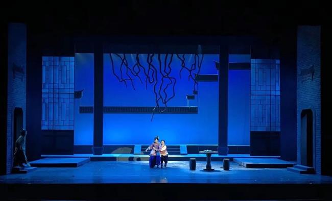 《牡丹亭》其设计提炼了中国传统建筑的典型元素,并运用当代视觉方式将古典元素巧妙地处理至最佳境界,这种节制与把控的设计方式呈现出典雅与优美间的平衡。舞台是极简主义的写意风格,化繁为简,白中着色。因此灯光设计在白色的舞台装置中,可以通过丰富变化展现不同的场景及情绪的过渡,来更好地适应《牡丹亭》戏曲表演的虚拟性和时空的自由度,保证演员在舞台上任何部位都是突出的,该隐则隐,该现则现,和戏曲中的主人公内心状态相契合,将观众带入情境之中。