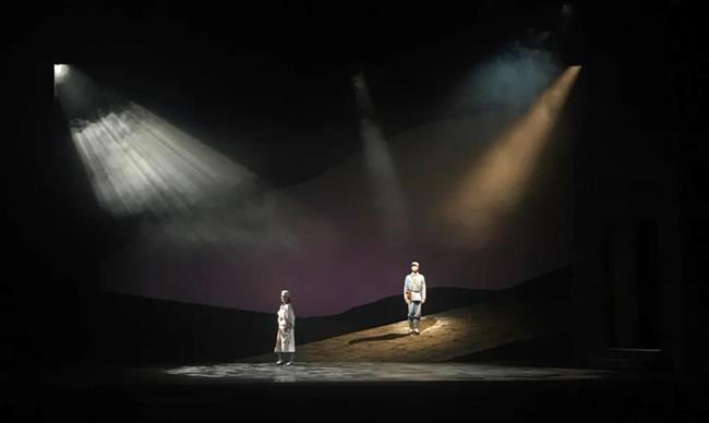 叙事的参与。灯光融入到歌剧的“宣叙”和“咏叹”结构中,灵活多变参与舞台叙事的意识流化表达。既表达时空概念,又渲染浪漫情调,以诗意的畅想,以恢弘的灯光,展开恢弘壮阔的史诗画卷。这是一种借助玛纳斯神性叙事魅力,充溢着阳刚之美的中国民族歌剧的新样式。