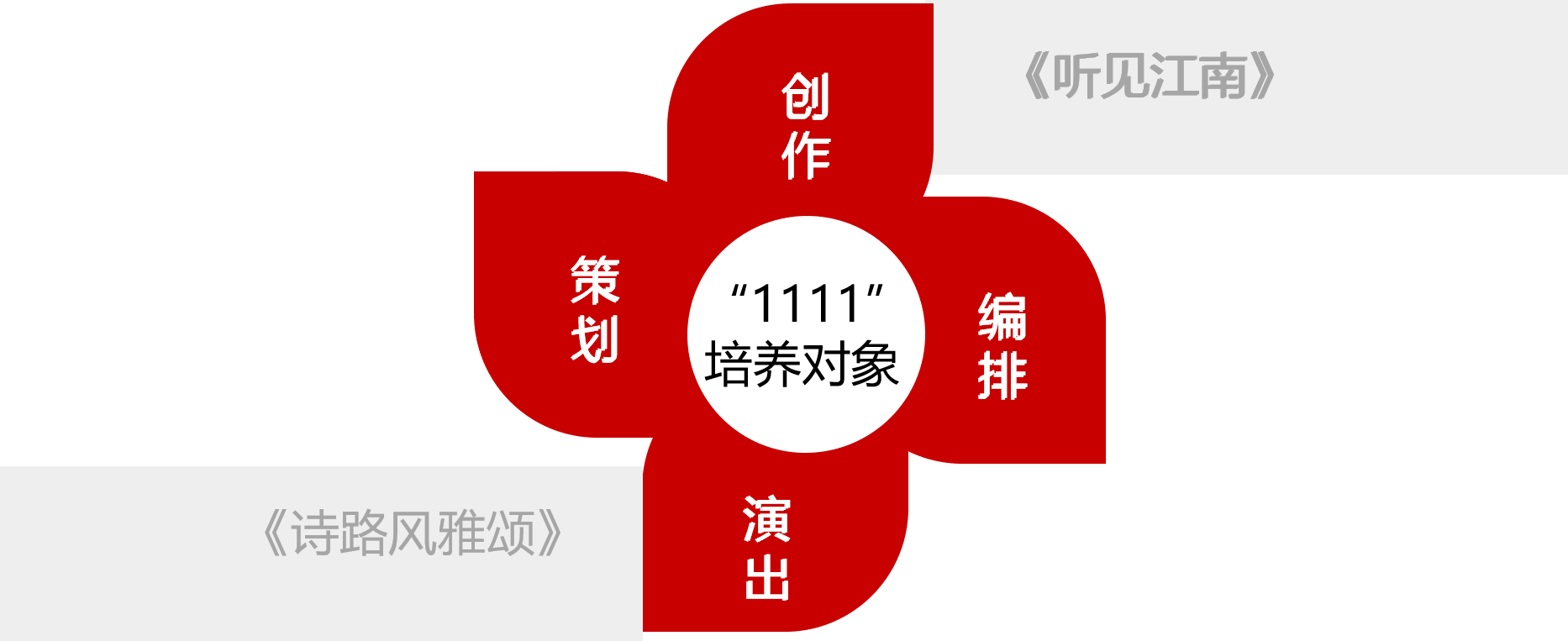 全体培养对象共同策划、创作、编排、演出,打造一批高质量的文艺作品。计划打造民族管弦乐音画《听见江南》和水上剧场《诗路风雅宋》。