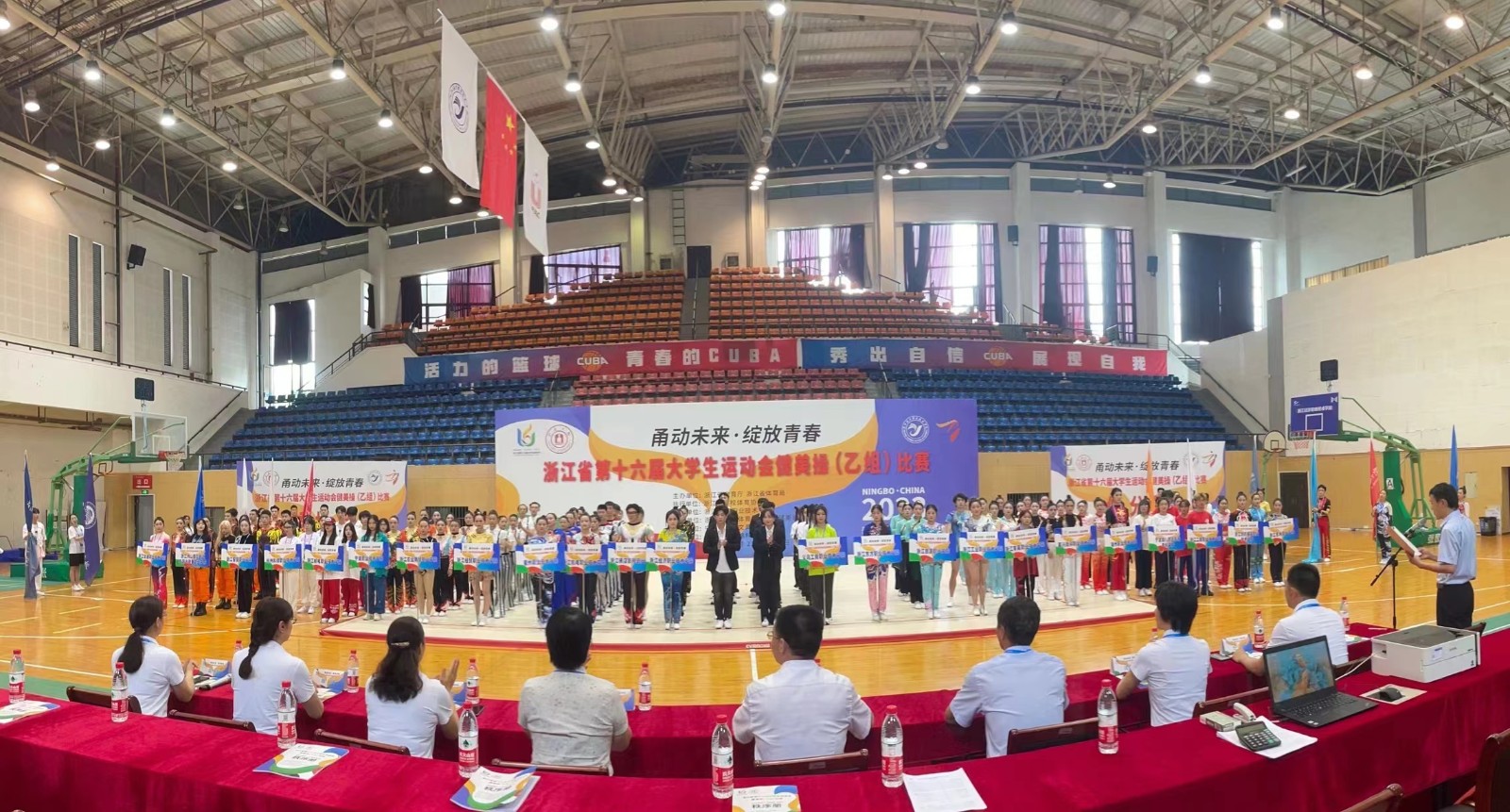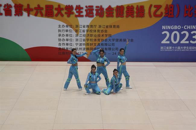 6月21-24 日,浙江省第十六届大学生运动会健美操(乙组)比赛在浙江经济职业技术学院落幕。本次比赛由浙江省教育厅、浙江省体育局主办,浙江省学校体育协会执行,浙江省学校体育协会大学健美操分会协办。由我校基础教学部公共体育部)钱慧文、王婧瑶担任指导的浙艺操舞队喜获佳绩——“5人自编有氧舞蹈”第一名、“5人自编有氧踏板”第一名、“5人自编街舞”第八名,这也是本次赛事唯一一所“双冠”学校。王婧瑶荣获“优秀教练员”称号。