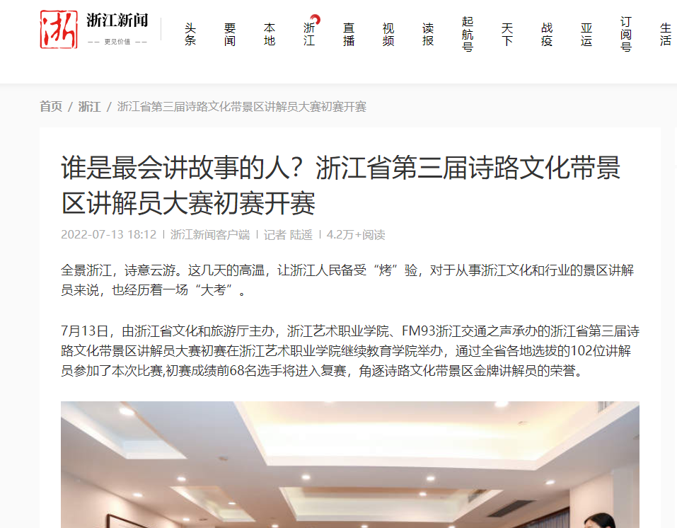 浙江新闻:谁是最会讲故事的人?浙江省第三届诗路文化带景区讲解员大赛初赛开赛