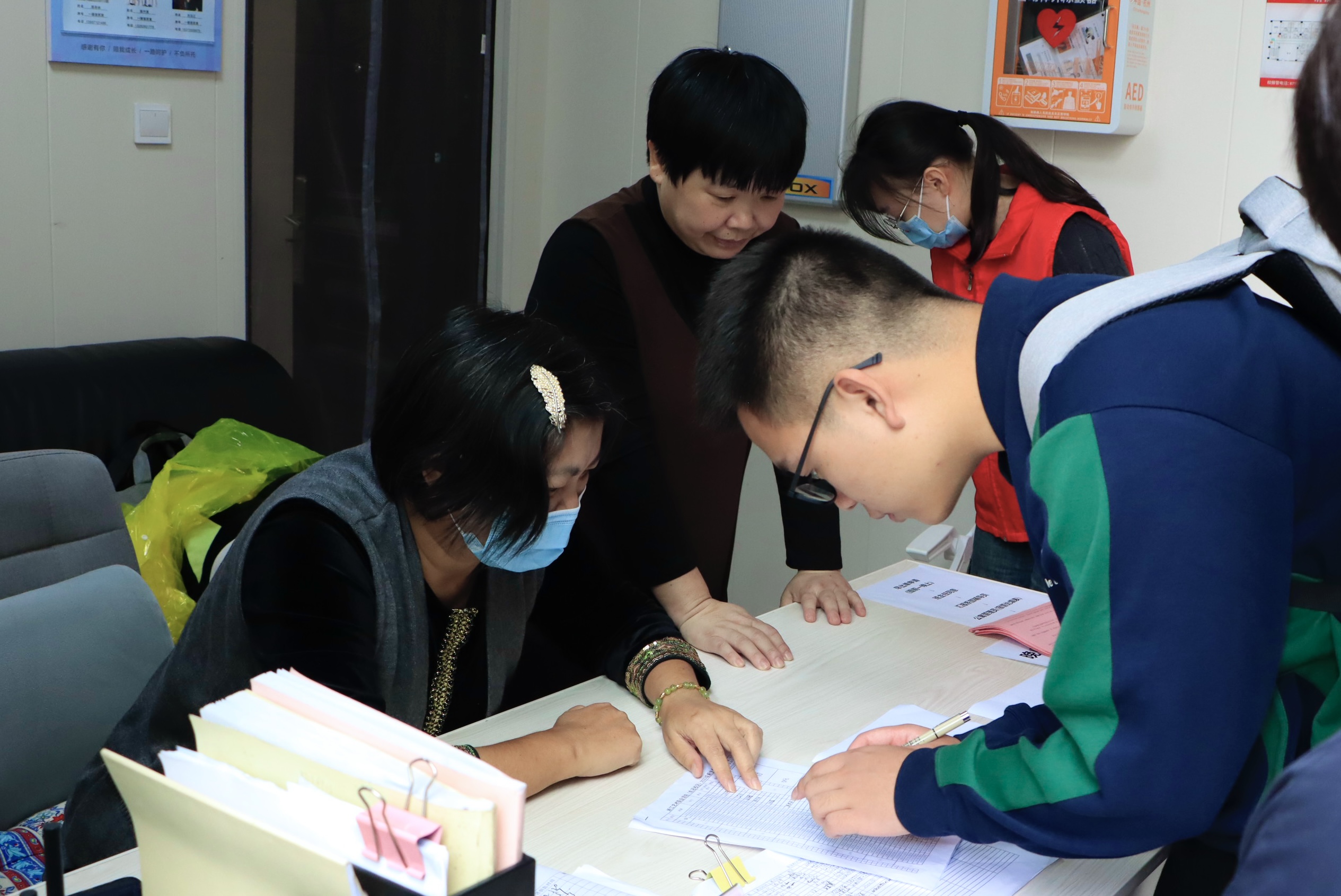 校党委书记薛亮,党委副书记夏开堂,副院长沈军甫、支涛来到报到现场,第一时间看望新生,了解新生报到情况,慰问现场工作人员与志愿者。