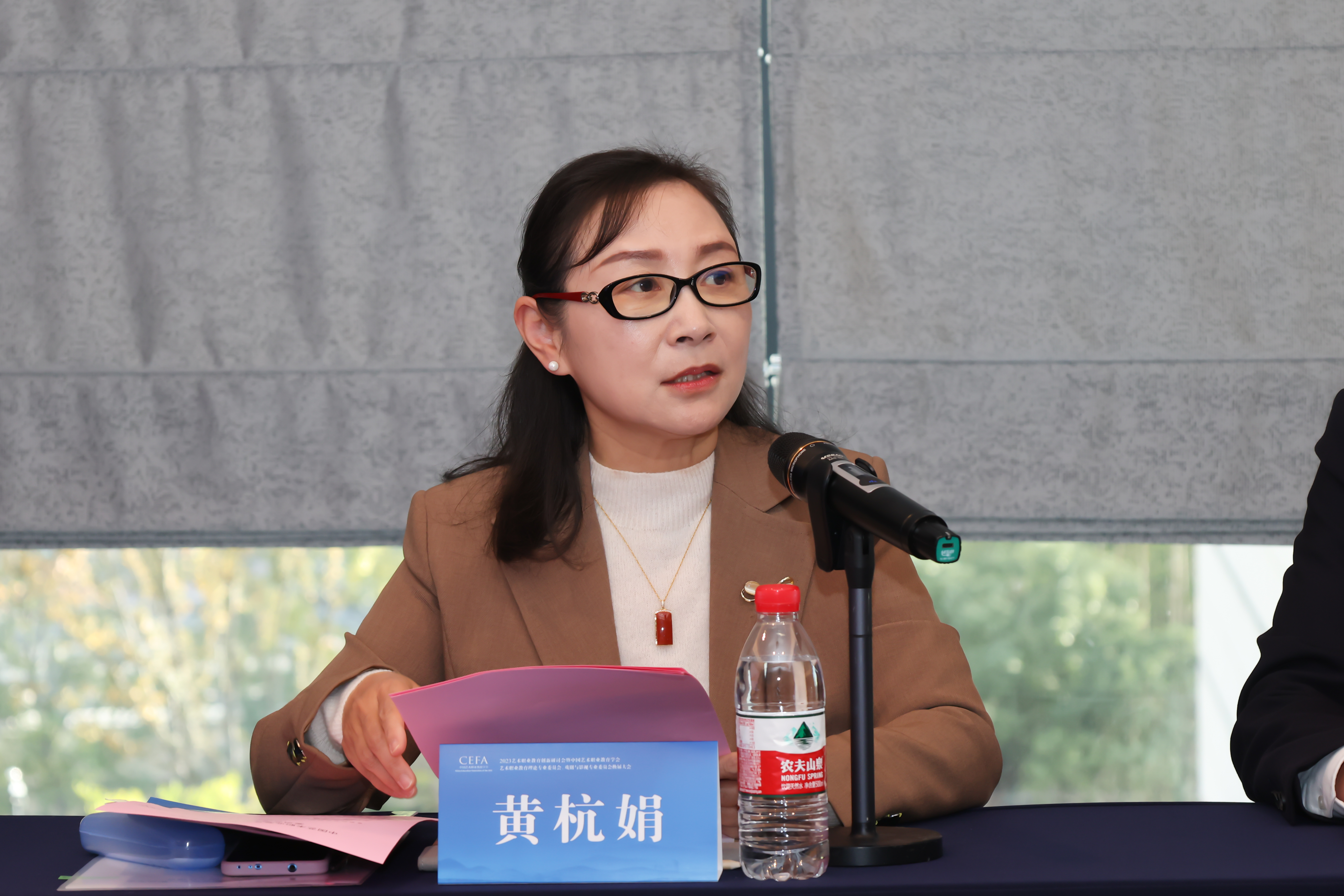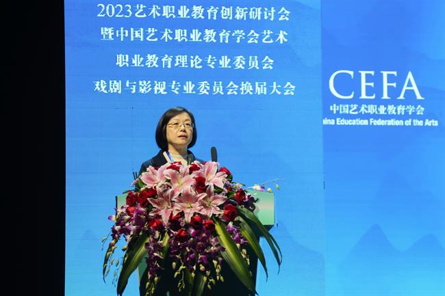 黄杭娟在报告时表示,第一届戏剧与影视专委会自2017年11月正式成立以来,围绕专委会自身建设、戏剧与影视交流平台打造、戏剧与影视专业教育发展和产教融合推进等方面展开了积极的实践与探索,取得了一定的成绩。通过组织一系列高水平的学术研讨会、讲座和项目研讨,搭建了学术平台,积极探索文旅融合背景下艺术赋能乡村振兴国家战略的戏剧与影视职业教育的实践模式。通过对话行企,同戏剧界与影视行业建立了广泛而深入的合作关系,为学生提供了更多实践机会。她表示,新一届戏剧与影视专委会将依据学会发展规划与工作部署,在未来五年里加强教育引领,深化学科专业建设。建立完善的专委会内部工作规程,保证专委会更好地运行与发展。进一步发挥优势资源,拓宽共建共享交流平台,推进戏剧与影视职业教育区域协同创新,推动优秀戏剧与影视作品走出去,以实际行动为艺术职业教育发展贡献智慧与力量。