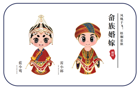 设乡云旅团队通过走访调研了解了郎村的民俗风情和非遗文化。团队以“畲族风情+非遗文化+乡村旅游”的思路,将凤凰作为畲族特有的文化形象图腾符号,针对“畲乡郎村”展开了特色IP系列形象设计,希望能借此传承和创新乡村文化血脉,优化和重塑乡村产业体系,推动乡村品牌价值提升。