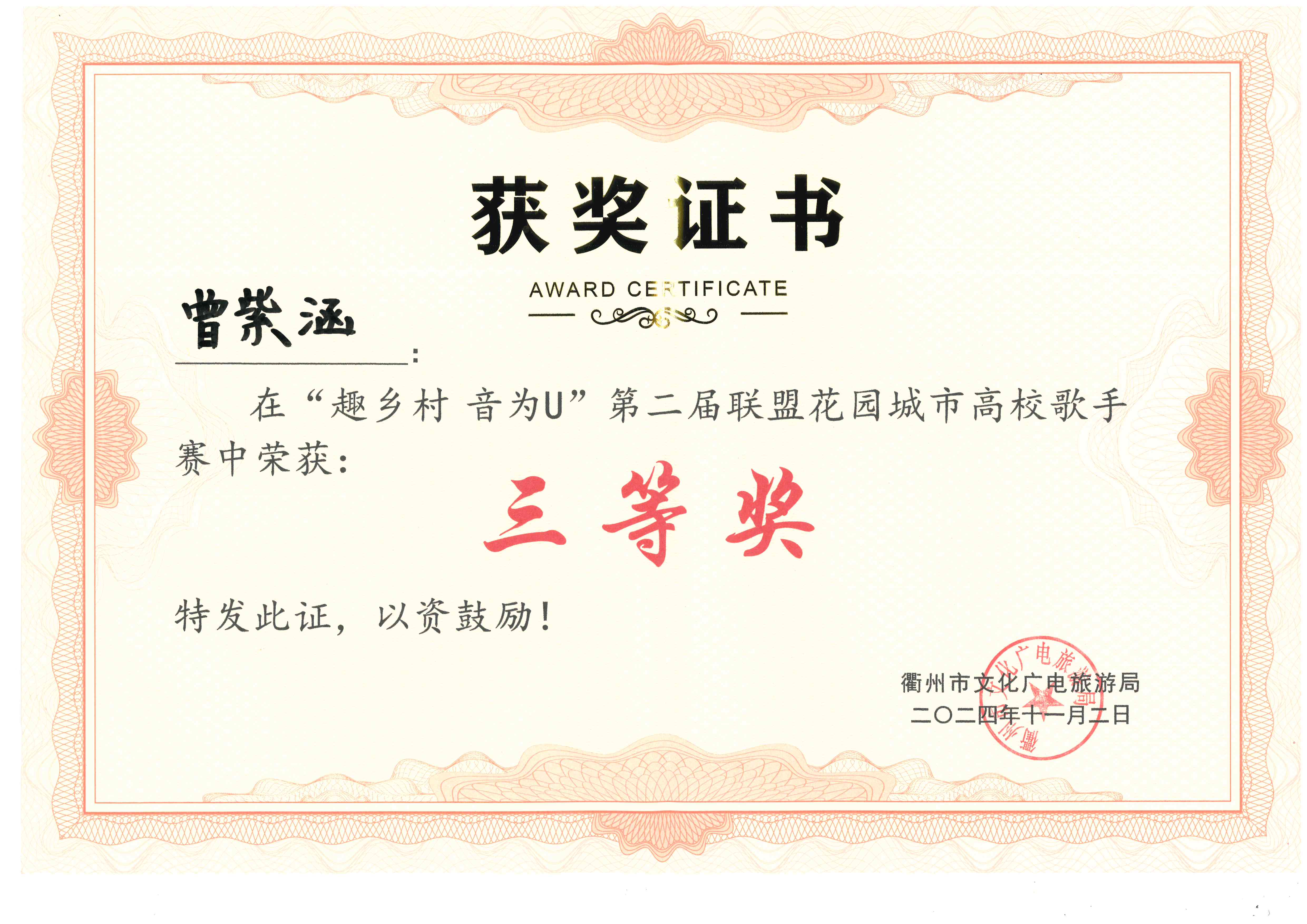 三等奖