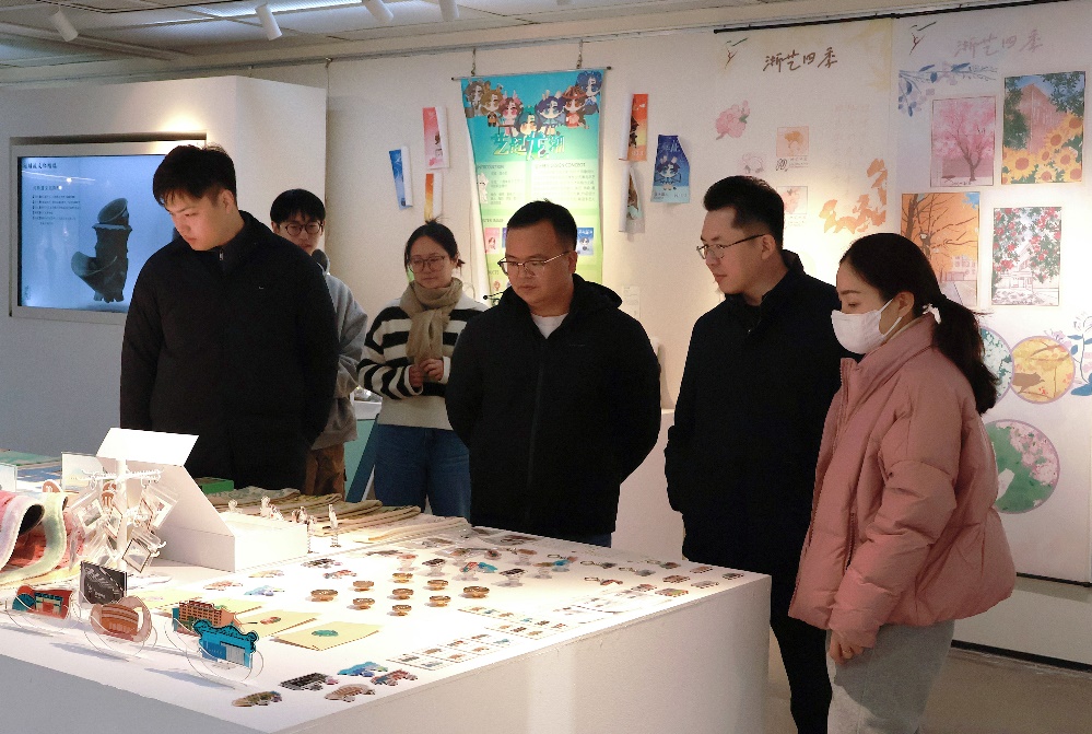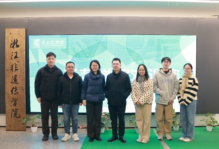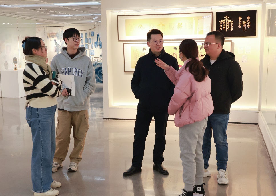 12月12日上午,浙江雅佳豪拍卖有限公司总经理喻天龙一行来到手工艺学院参观了“匠心守艺”非遗创意成果展,并进行交流。