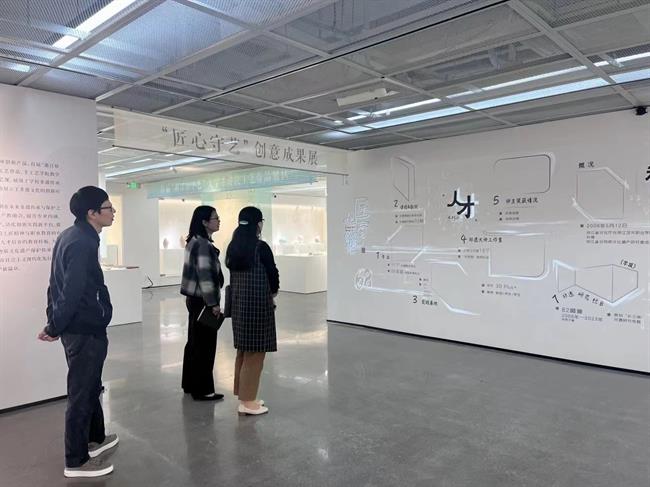 手工艺学院党总支书记钟黎介绍了学院课程体系、学生优秀作品以及人才培养方案等内容,学院领导班子陪同参观“匠心守艺”非遗创意成果展,希望与浙江旅游职业学院旅行服务与管理学院加强院际交流与合作,共同探索学院发展和人才培养新路径。