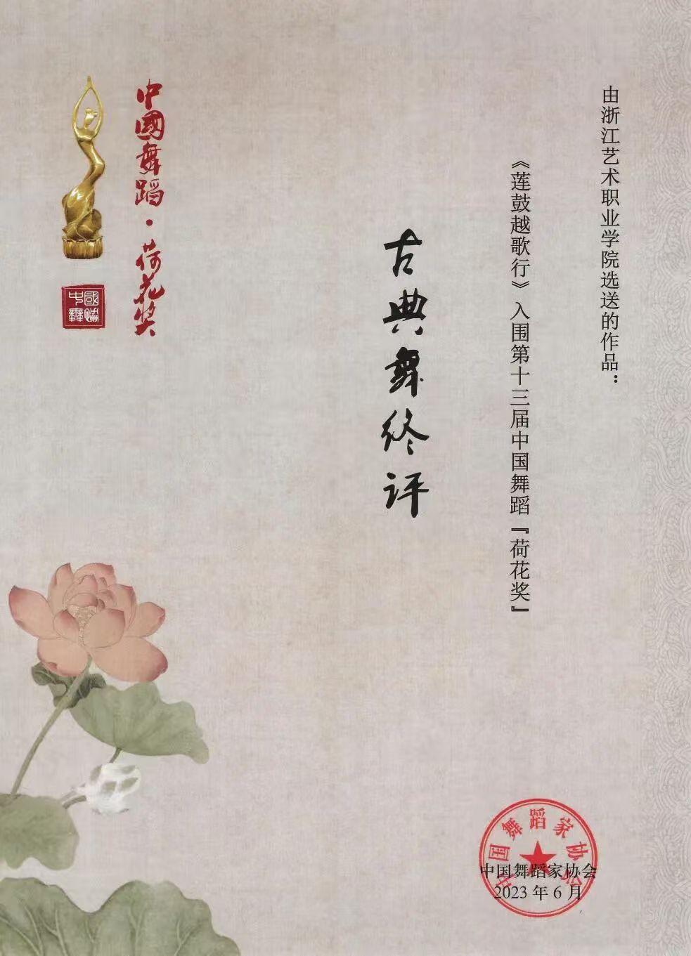 3.精品课《景宁畲族舞蹈步伐训练》入选2023年第十三届“桃李杯”全国青少年舞蹈教育教学成果展示活动.jpg