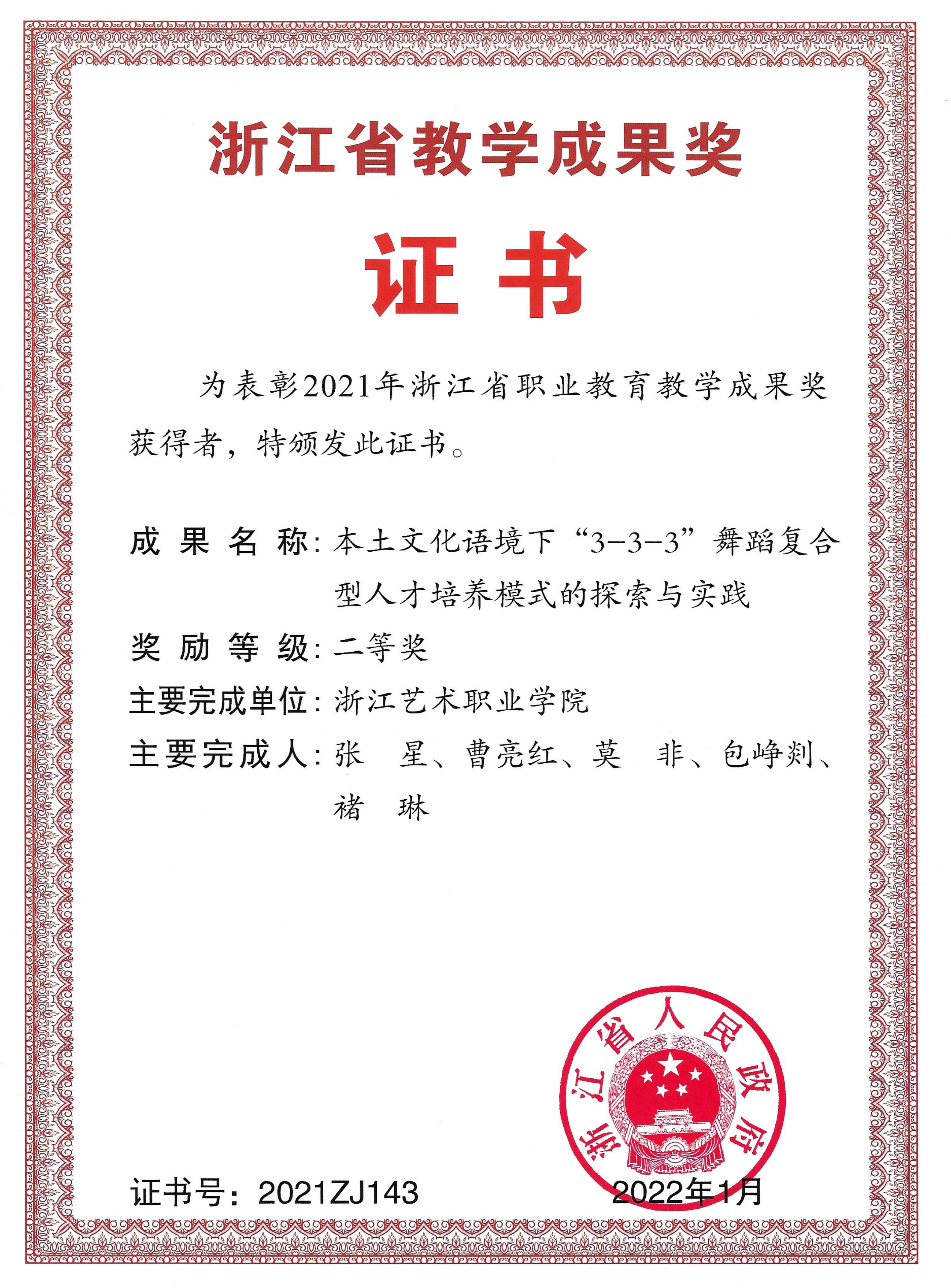 >连续两届获得浙江省教学成果奖