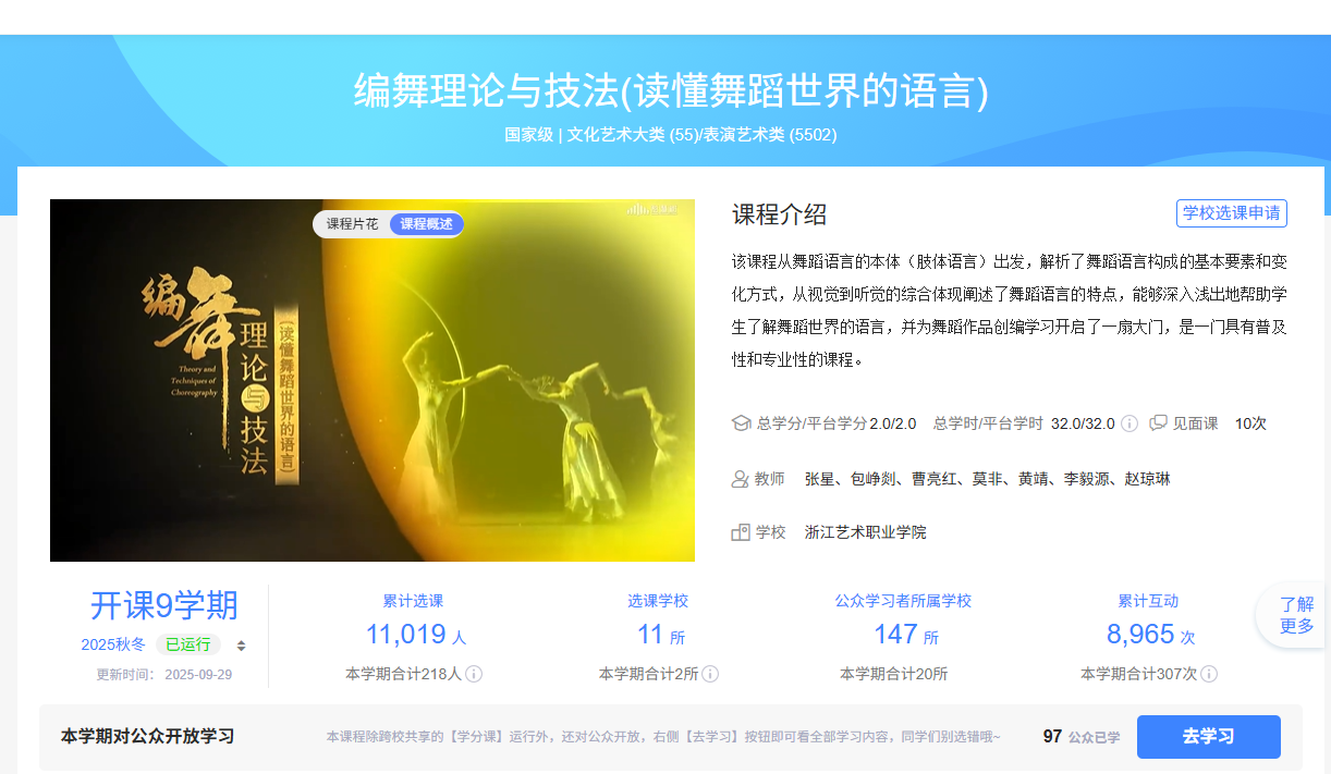 >《编舞理论与技法》入选教育部国家在线精品课程