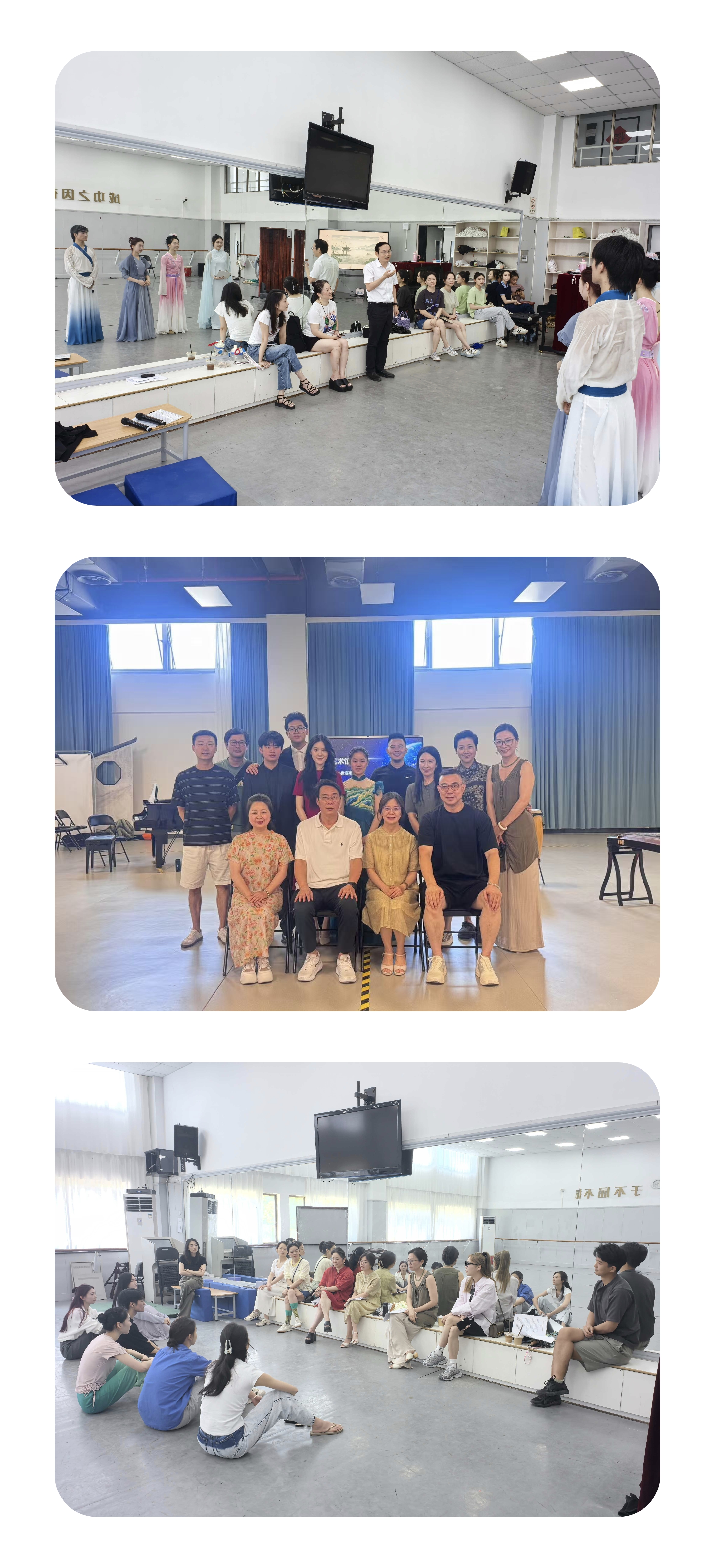 面对今年赛制的重大调整,学校统筹谋划,教学实践中心牵头推进,各二级学院积极协同、形成合力。高职组参赛项目《遇见江南——新演艺赋能文旅场景的创新实践》由舞蹈学院和音乐学院联合创排,设计学院提供舞美支持,深度融合江南文化元素与现代舞台表演手法,获得评委一致高度认可。中职组参赛剧目《艺术馆之夜》由音乐学院与戏剧影视学院联合打造。参赛师生全力投入暑期备战,克服多重困难,展现出优秀的专业水准和团队凝聚力。